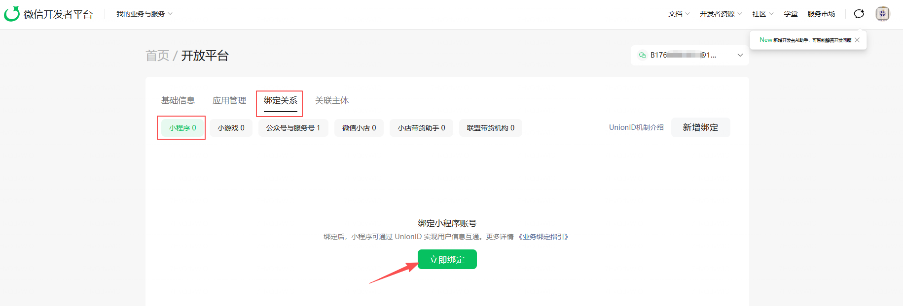 如何申请开放平台绑定小程序和公众号,实现会员数据互通?