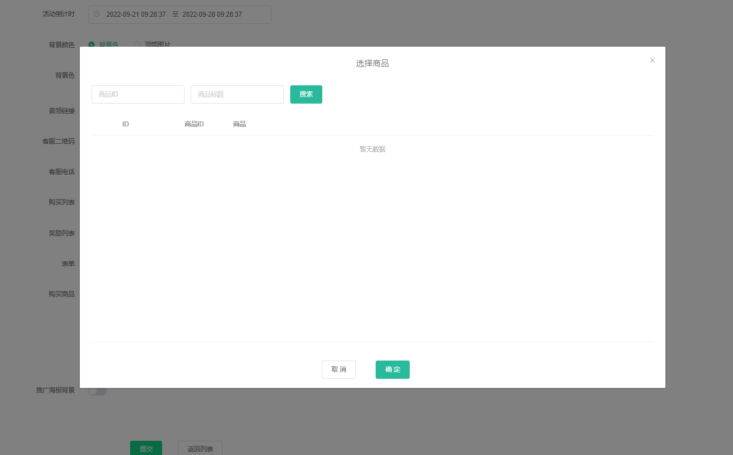 1、可根据活动ID、活动名称、活动创建时间查询.