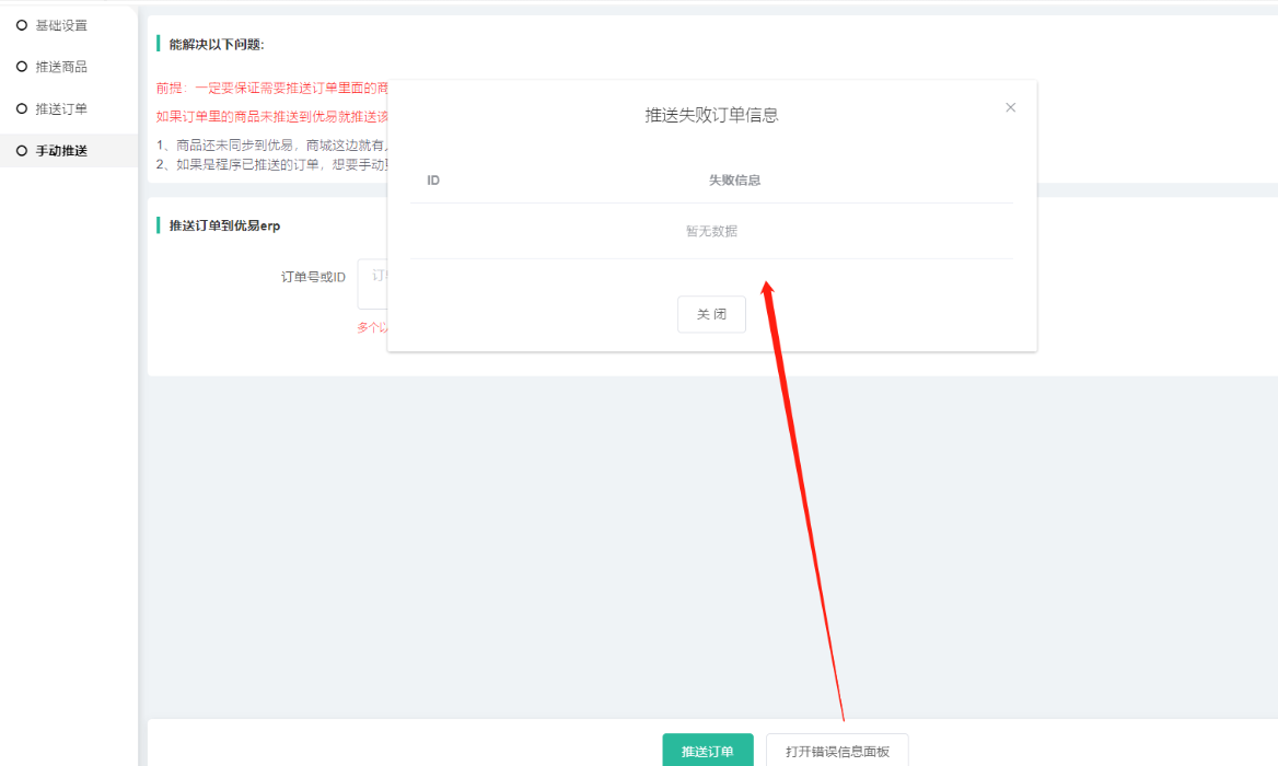 3、打开错误信息面板——可查看到推送失败订单信息