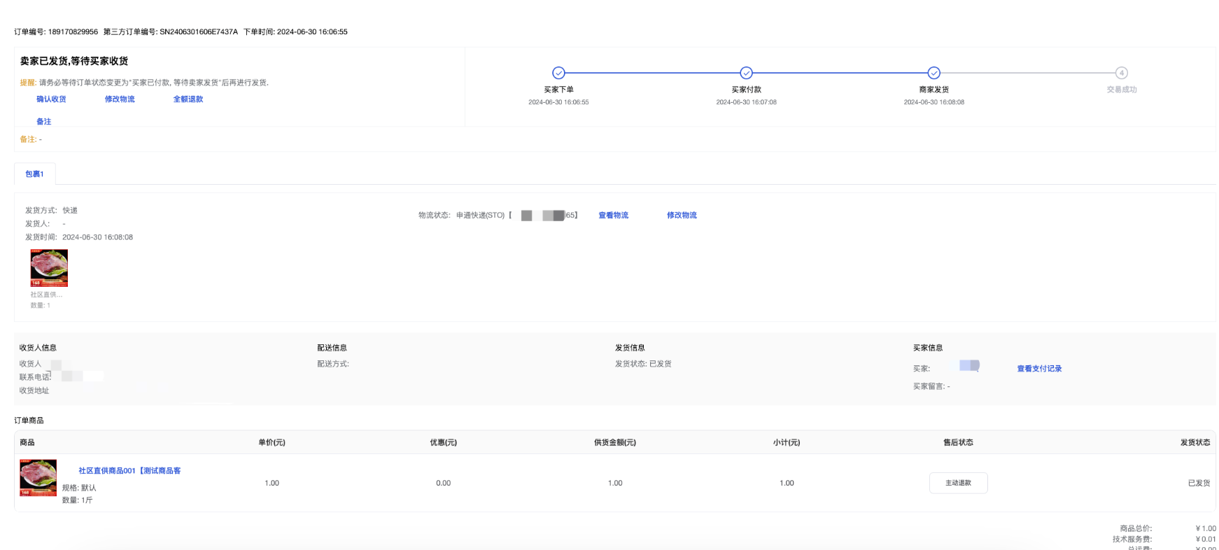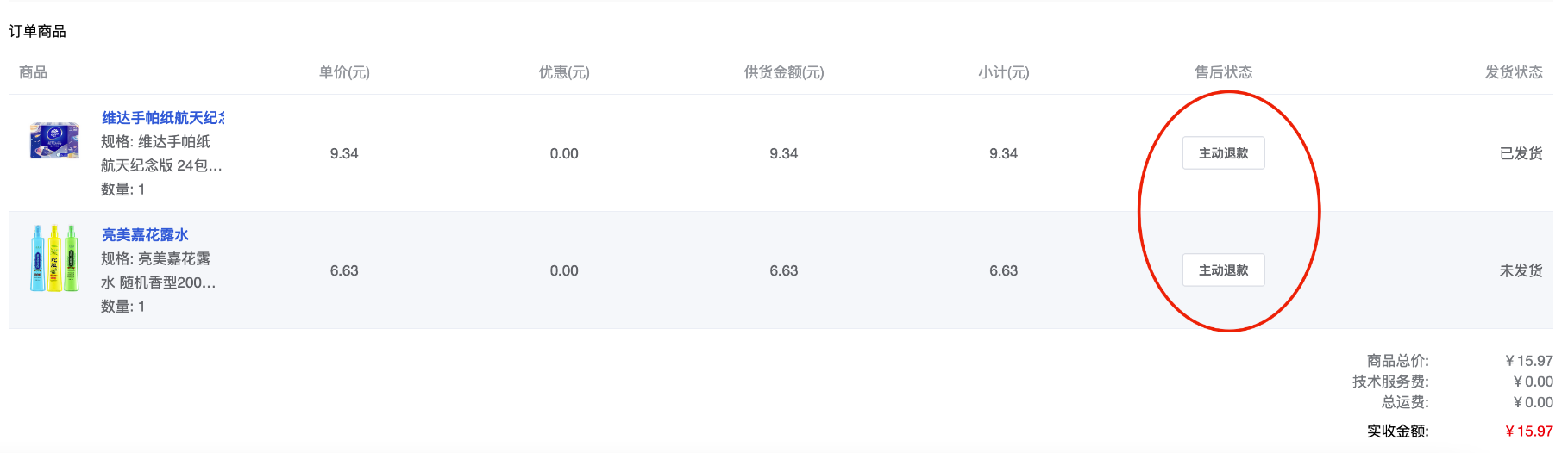 - 订单金额汇总:商品总价、技术服务费(会员/采购端技术服务费)、运费、订单总额;