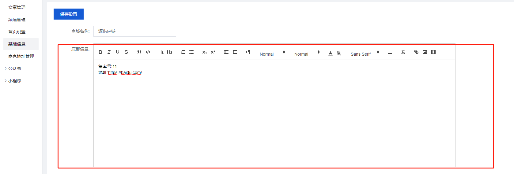 2.底部信息:可手动编辑要显示的信息,设置好点击保存即可;