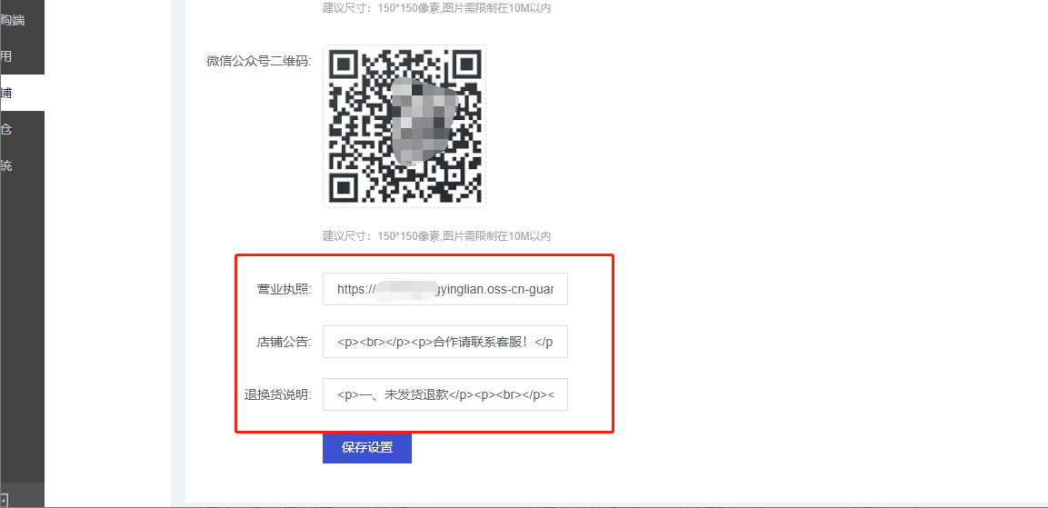 4.客服链接:可放置中台客服链接,填写以https:// 开头的客服链接,前端采购商城点击可跳转客服聊天页面;