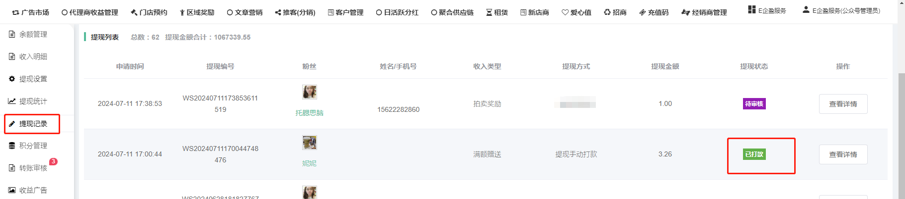 【前端佣金选择提现到手动提现-银行卡以及审核打款操作流程】