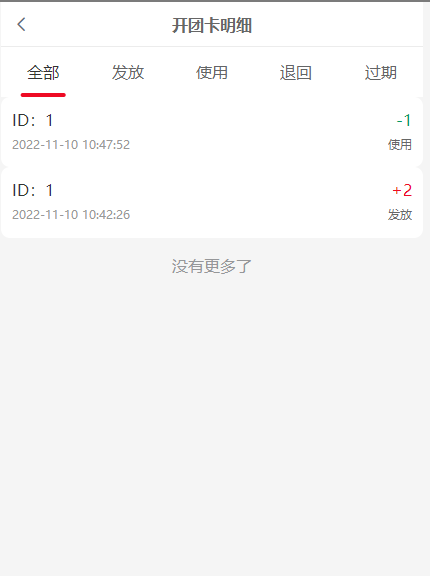 7, 明细列表:开团卡的明细变动列表