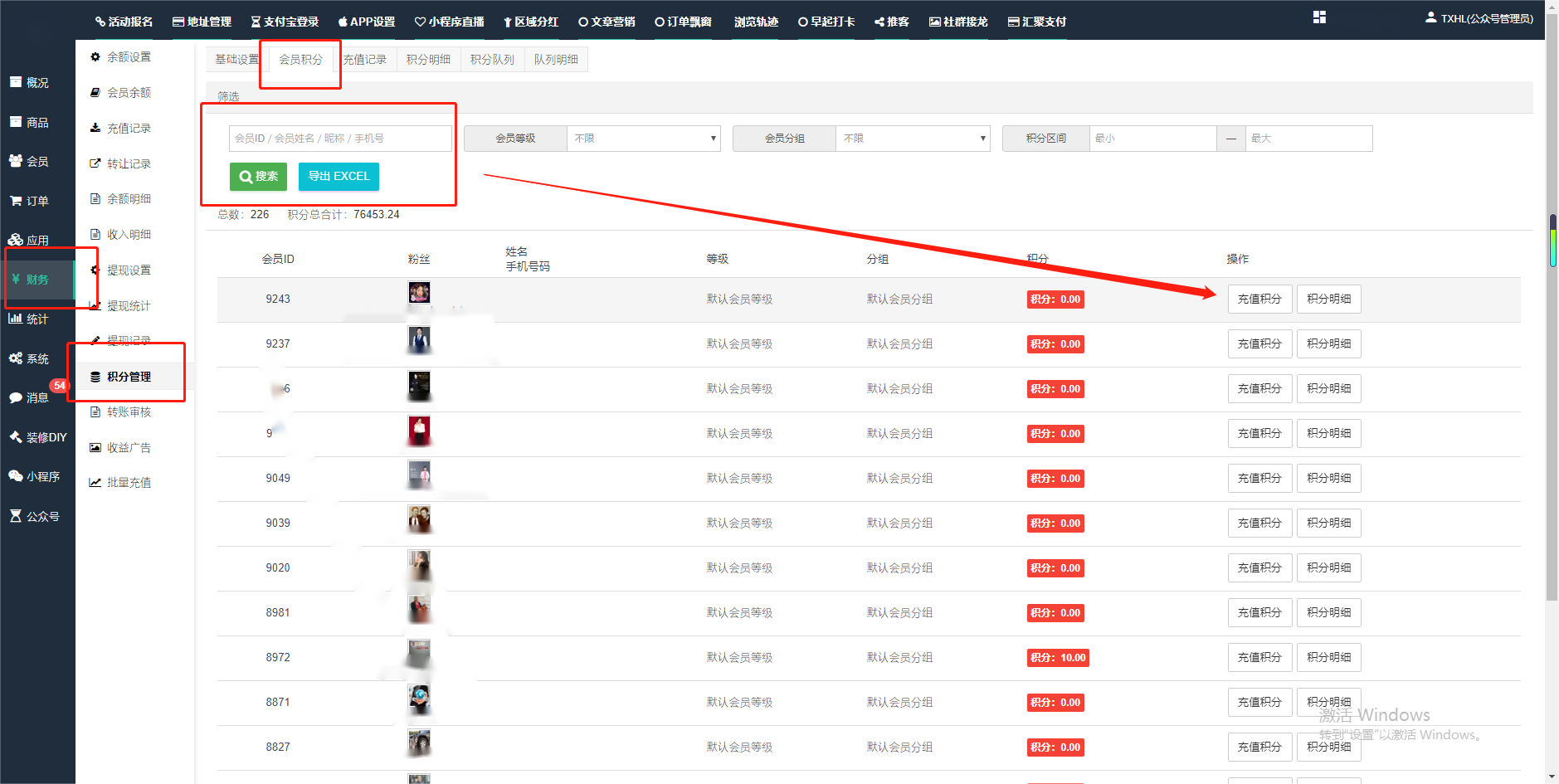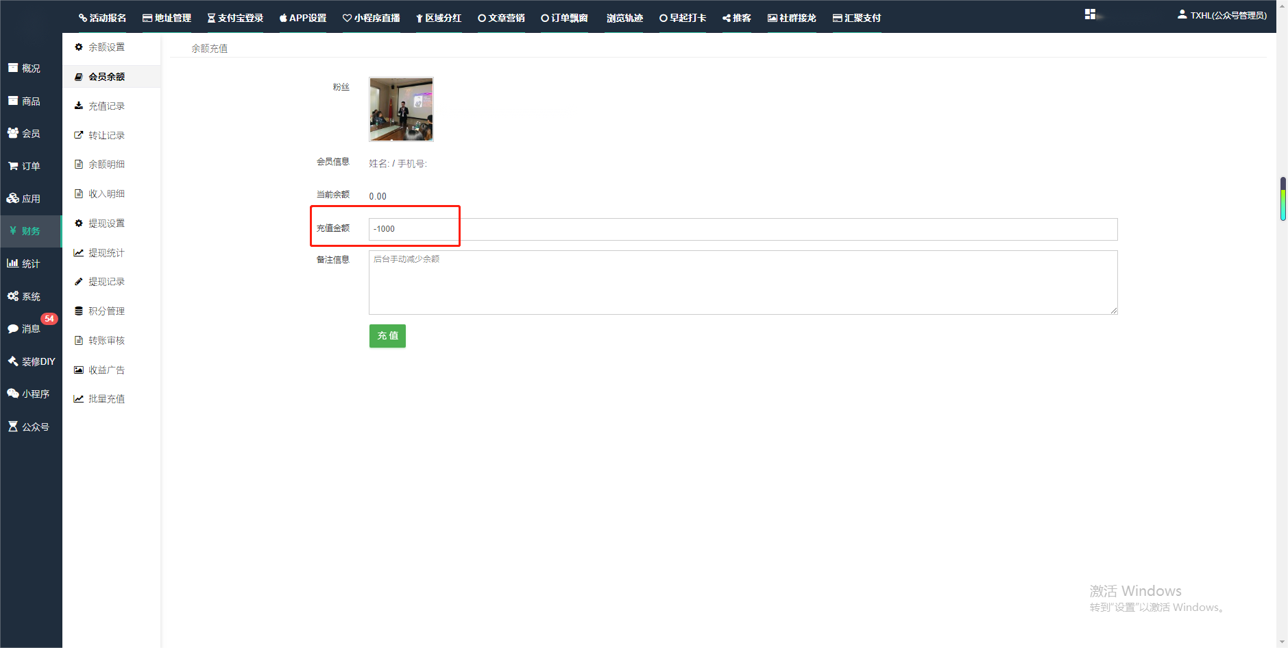 目录 搜索 展开 一、前期准备资料二、数字乡村码-上线操作指南1、服务号的申请流程及认证2、申请小程序流程3、开放平台绑定小程序和公众号三、数字乡村码-系统操作数字乡村码系统管理-概况数字乡村码-商品管理1、发布商品2、商品列表3、商品表单4、商品分类5、品牌管理6、配送模板7、评论管理8、优惠券管理9、商品标签10、退货地址设置11、满额优惠12、批量操作13、配送方式14、基础设置15、商品隐藏四、数字乡村码-会员管理1、全部会员2、会员等级3、会员分组4、资格申请5、会员设置6、推广中心设置7、会员邀请码8、会员关系链修改关系链修改记录9、会员合并记录10、账号注销管理11、会员设置中心五、数字乡村码-订单管理1、订单管理列表2、订单处理流程3、订单状态4、订单修改价格5、订单退款退货6、多包裹发货7、批量发货订单操作步骤8、催发货订单9、物流查询六、数字乡村码-财务管理1、余额设置2、会员余额3、充值记录4、转让记录5、余额明细6、收入明细7、提现设置8、提现统计9、积分管理10、转账审核11、收益广告12、批量充值七、数字乡村码-系统管理1、商城入口2、商城设置①、商城设置②、订单设置③、物流查询④、短信⑤、联系方式⑥、分类⑦、优惠券⑧、分享⑨、幻灯片⑩、广告位⑫、地图设置3、交易设置4、微信模板消息自定义消息模板(新版)自定义消息模板(旧版)小程序消息模板公众号模板消息变更公告5、语言设置6、权限管理7、多媒体管理八、数字乡村码-消息管理九、数字乡村码-应用管理十、数字乡村码系统-数据统计十一、数字乡村码-页面装修DIY1、模板管理2、店铺页面3、顶部导航4、底部导航5、DIY模板市场6、首屏广告7、基础设置8、装修DIY尺寸建议十二、供应商功能插件操作指南1、供应商2、门店-收银台门店申请和使用步骤门店管理①、门店-收银台 营销设置②、门店-收银台 分润设置门店分类门店申请门店审核门店商品门店商品订单收银台订单数据统计核销员基础设置默认设置门店装修3、微社区4、会务活动十三、营销插件操作指南活动报名提货卡新人奖微店问卷调查积分视频分享1、视频分享基础设置2、视频分享发现管理3、视频分享分类管理4、视频分享评论管理5、视频分享分红记录6、视频分享短视频中心每日红包幸运大抽奖签到优惠券二维码任务奖励优惠劵文章音频文章付费文章限时购新海报拓客卡操作流程积分活动素材中心视频红包十四、入驻门店应用类1、门店预约2、附近商品3、门店定位设置4、门店控制5、门店满额包邮6、门店满额减7、导入商品8、门店搜索9、门店股东10、核销券11、多门店核销1、商城后台设置2、前端功能演示十五、常见问题1、后台登录密码修改流程2、会员-余额,积分,后台如何进行充值与扣除3、如何修改上下级关系4、一种万能的获取商城小程序路径的方法 暂无相关搜索结果! 阅读次数:2122 本文档使用 模王系统 发布 2、会员-余额,积分,后台如何进行充值与扣除 会员-余额,积分,后台如何进行充值与扣除一.如何进行余额充值-扣除1.财务-会员余额-搜索会员昵称-右边点击充值余额2.扣除余额,只需要在充值金额前加上 - 号;比如充值-100,等于扣除100余额二,如何手动充值积分-扣除积分(充值与扣除逻辑跟余额是一样的)文档更新时间: 2024-01-05 14:28 作者:链上旅行
