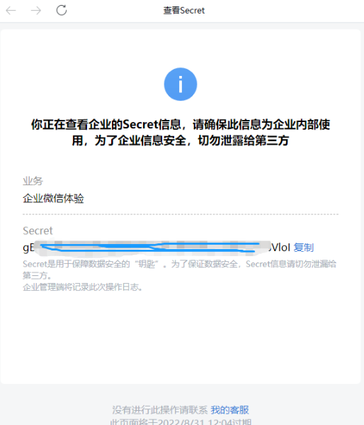 注意:获取时需要在企业微信客户端二次确认进行复制。