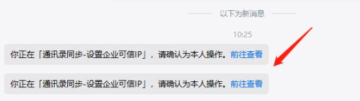下面用电脑端企业微信截图讲解,管理员收到企业微信团队消息,点击前往查看,确认操作