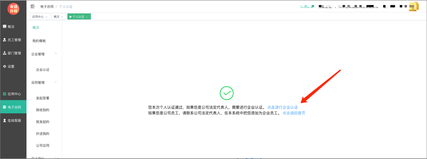 认证通过后,进入电子合同--概述页面,刷新,可以看到个人和企业皆已通过认证