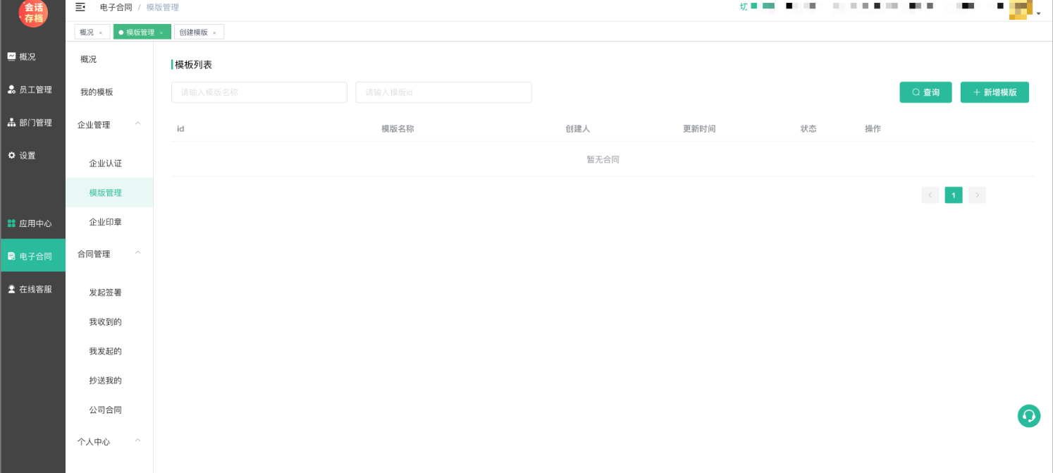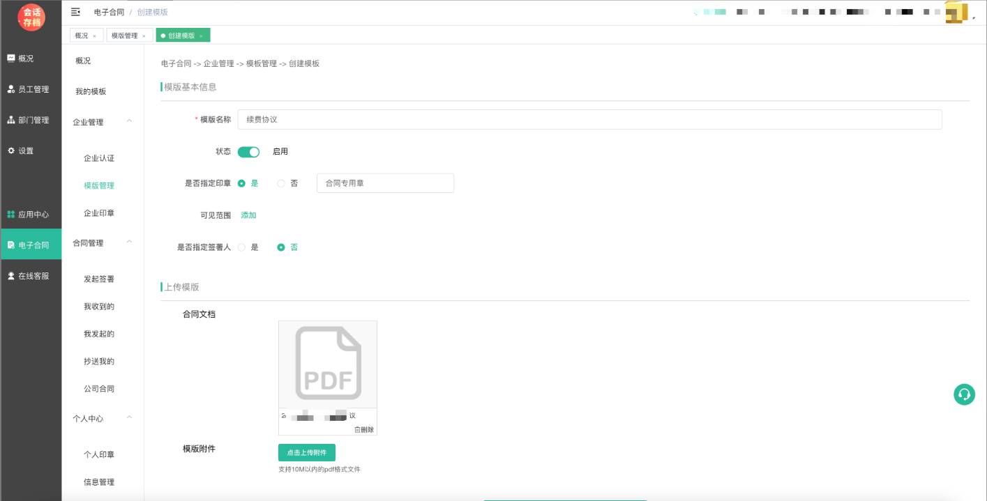 1、在电子合同--企业管理--模板管理中新增模板