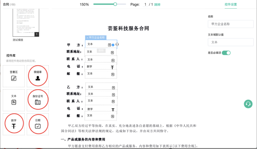 - 文本域高度有一定的最小要求,编辑合同模板时,建议适当增加行高。