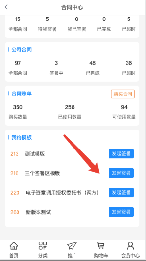 选择【我的模版】栏目里的合同模版发起签署;