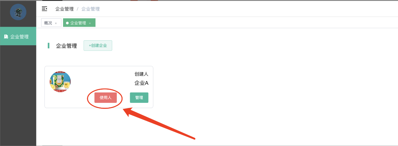 选择对应企业,选择使用人