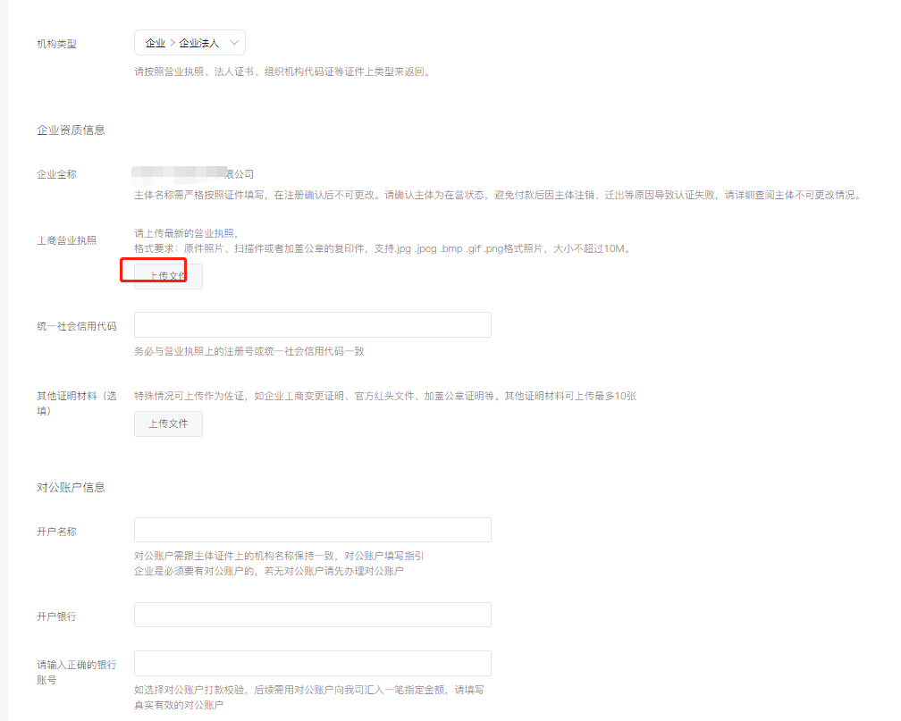 2、营业执照扫描件或照片、对公账户(账号、开户行、个体户提供法人账号)