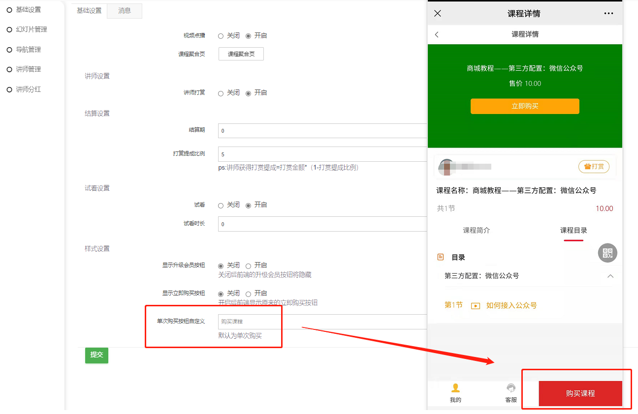 3、开启讲师打赏【基础设置开启打赏、课程商品开启打赏,前端才可以打赏】