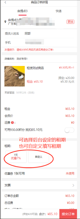 注意:租赁商品,选择快递配送,租赁商品到期日期是从 “确认收货时间” 开始统计;如果是 选择 自提点核销 ,租赁商品到期日期是从“扫码核销时间”开始统计