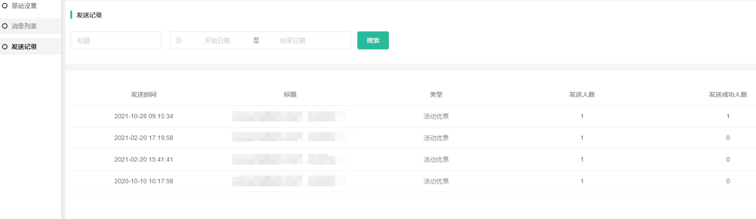类型包含服务消息、活动优惠两种,用户收到的消息将在不同的板块显示。